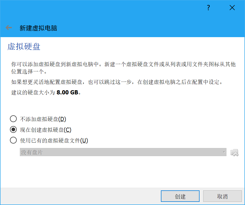 然后创建一块虚拟硬盘: