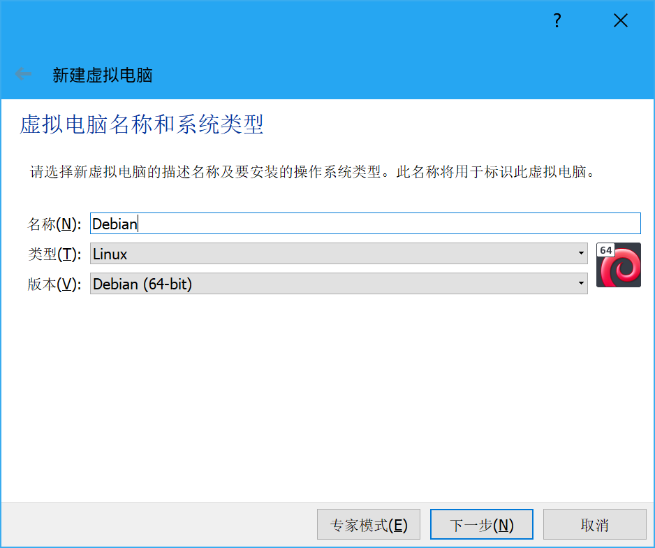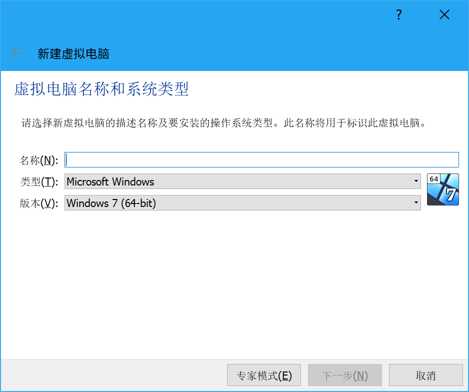 然后输入虚拟机的名称(咱比较习惯用虚拟系统的名称,于是……):